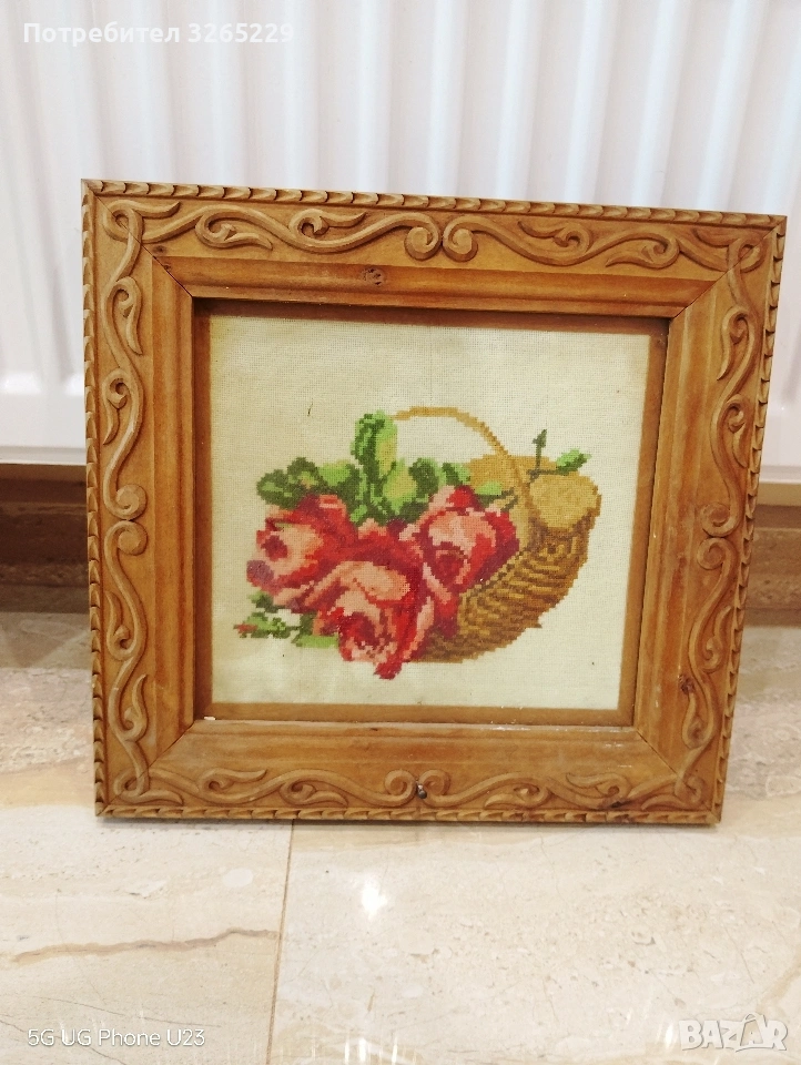 Картина рози в панер с дървена рамка 30х32см.със рамката.