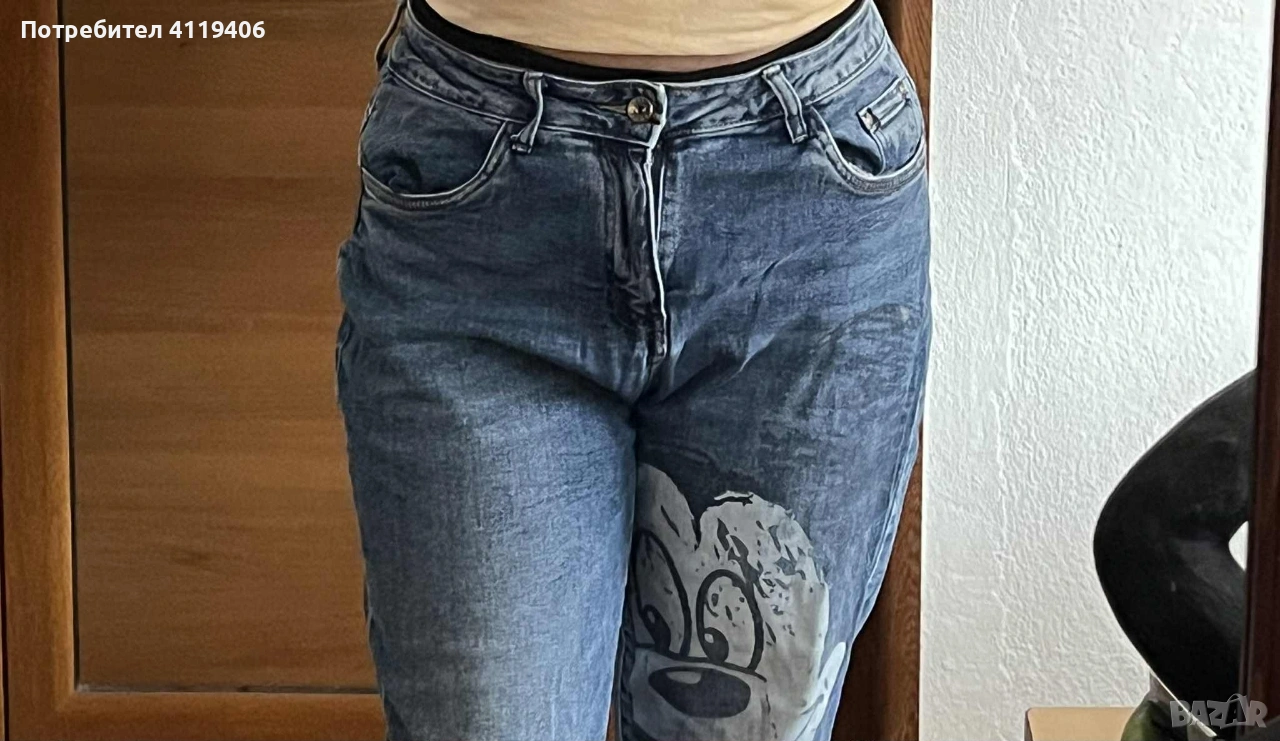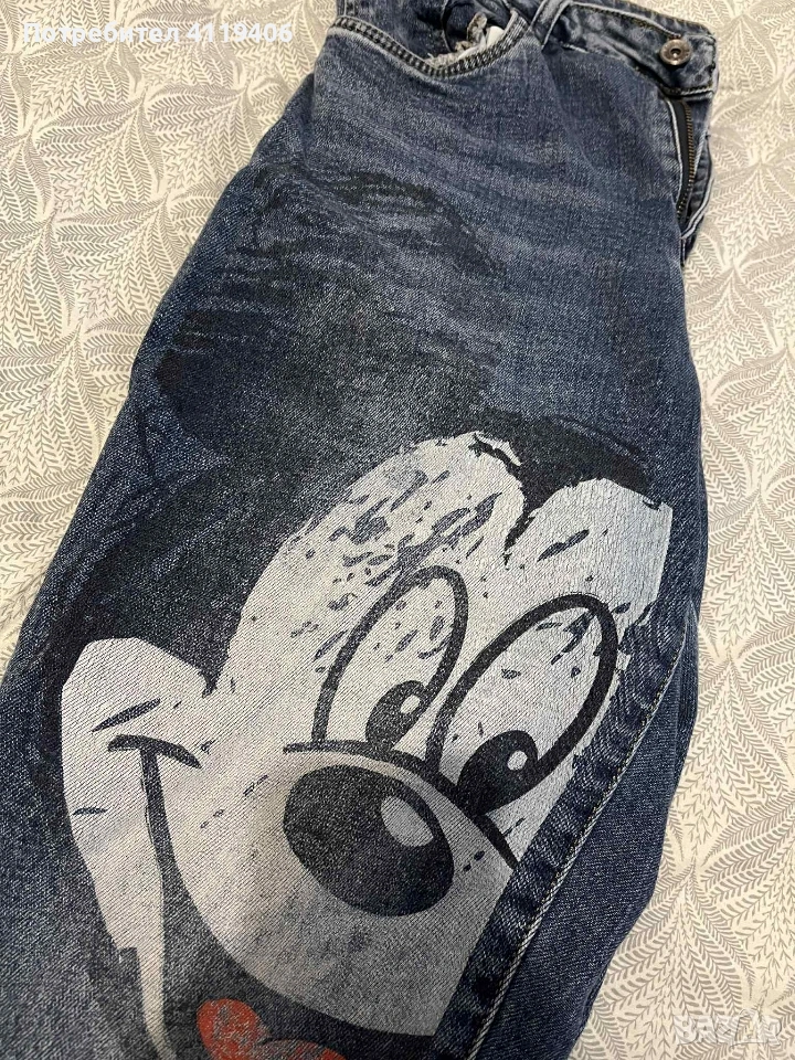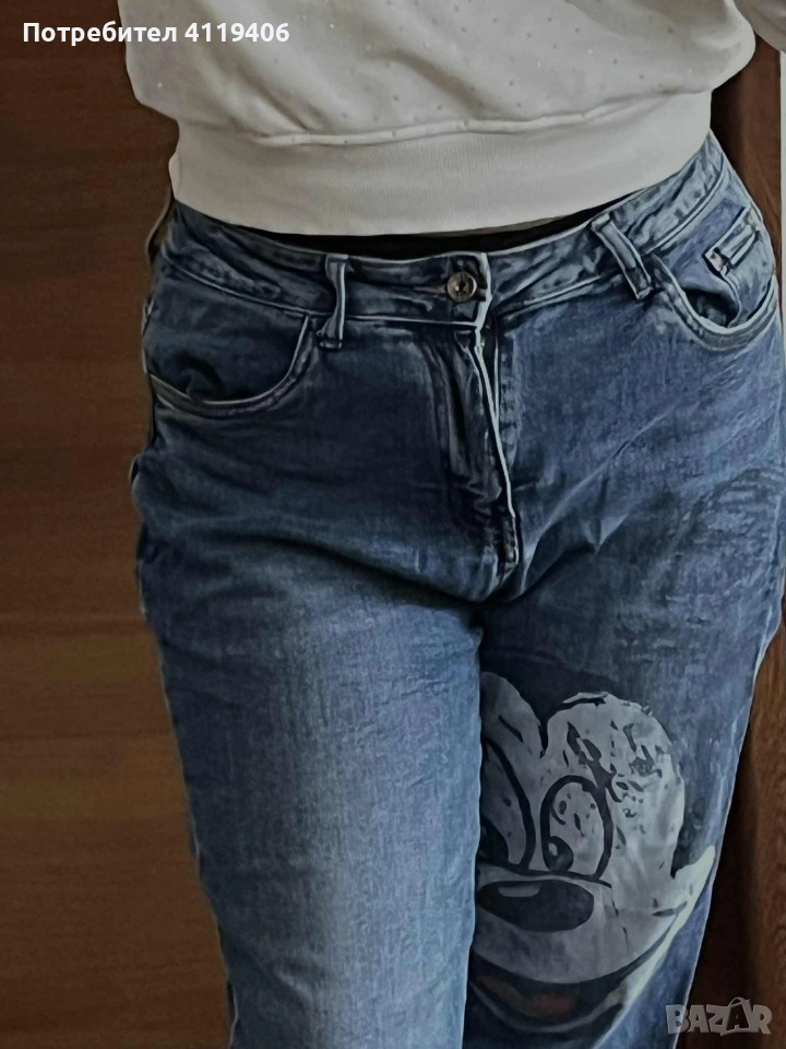 Дънки с висока талия,размер M(38).Подходящи за ежедневно носене или за тийнейджъри,които харесват "Мики Маус".