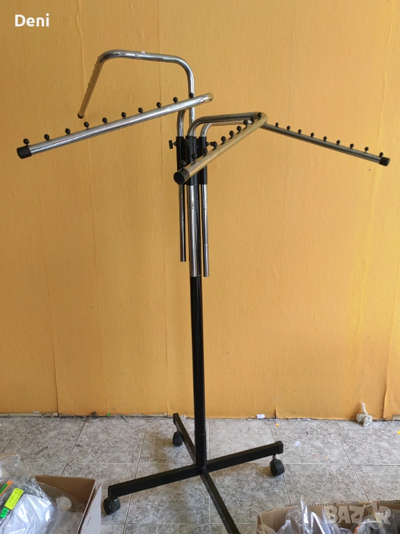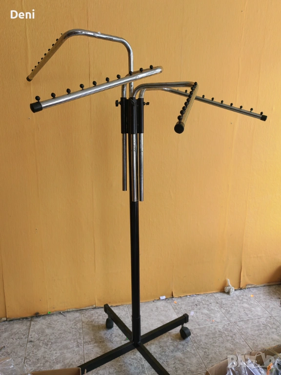 В много добро състояние. Въртящи. Всички рамена могат да се регулират на по ниско и на по високо. Подходящ за всички видове дрехи.