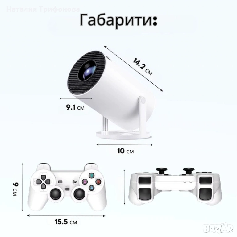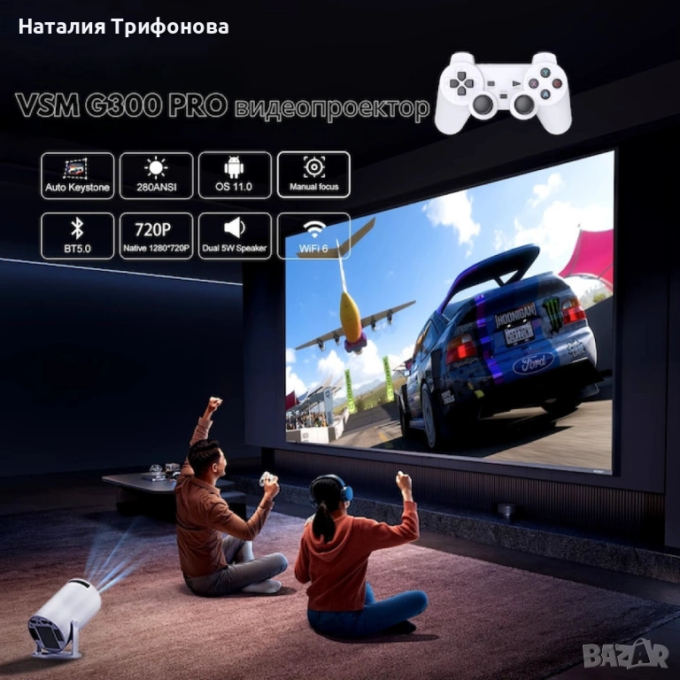 Интелигентен видео проектор 4K с два геймпада, дистанционно управление, Android TV 11 и WiFi 6