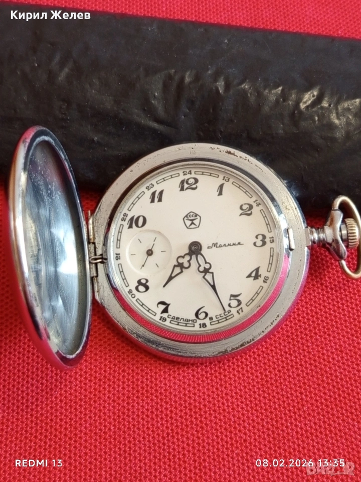 Стар джобен часовник Мълния СССР работи перфектно състояние за КОЛЕКЦИОНЕРИ 53642