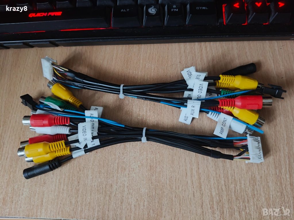Кабели за изход буфер, усилватели, старт на усилвателя, вход за микрофон, видео изход, видео вход. Буксата пасва на навигации Junsun