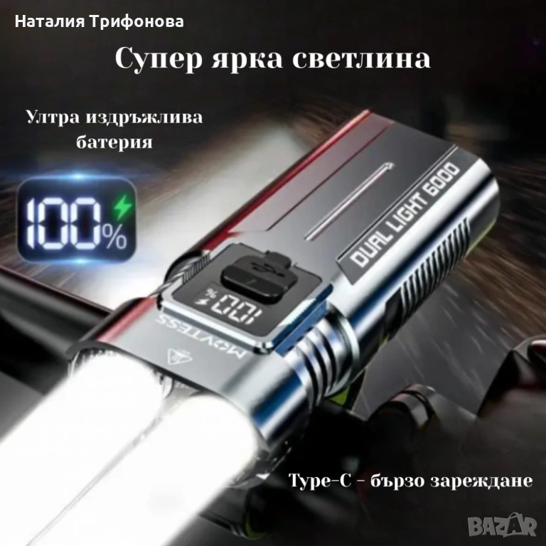 Технически характеристики на Мощен Led фар за велосипед и фенер 2в1 BL-SM-220 10W – акумулаторен фар за колело с дисплей, 4 режим