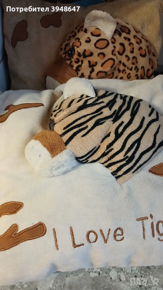2 бр.меки,пухкави възглавнички с 3D ефект и мотив на " Леопард" и " Тигър" за детската стая.
