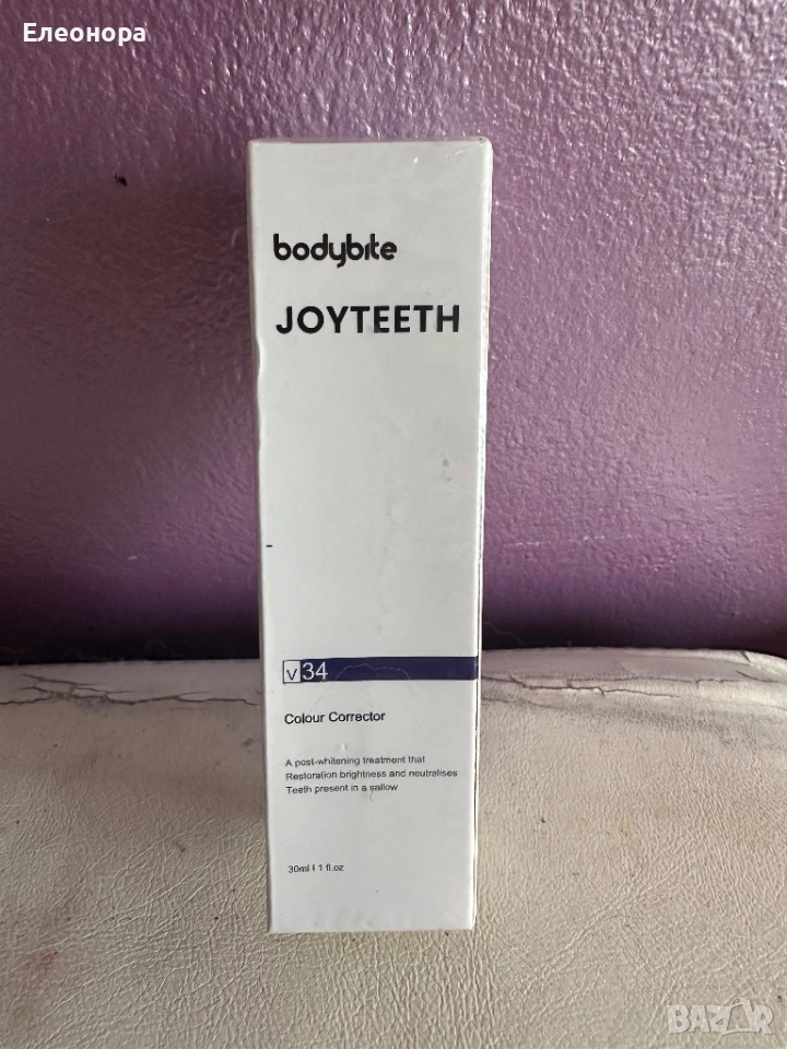 V34 e избелващ серум за зъби, напълно натурален. Не е разопакован, срок до края на юли 2026 г.