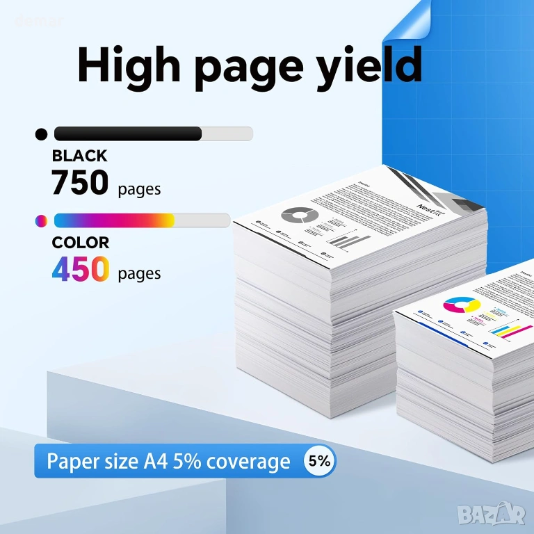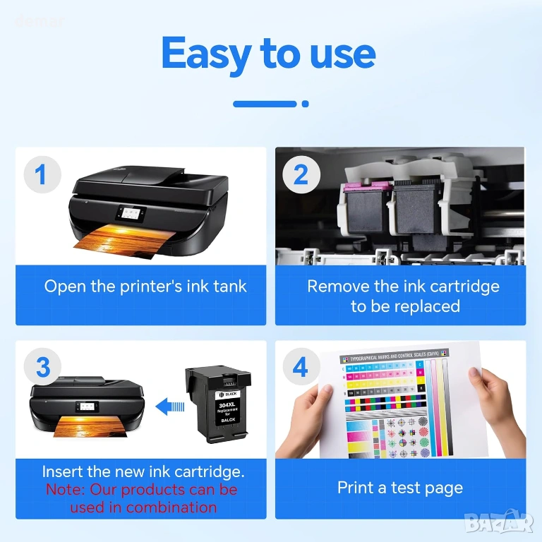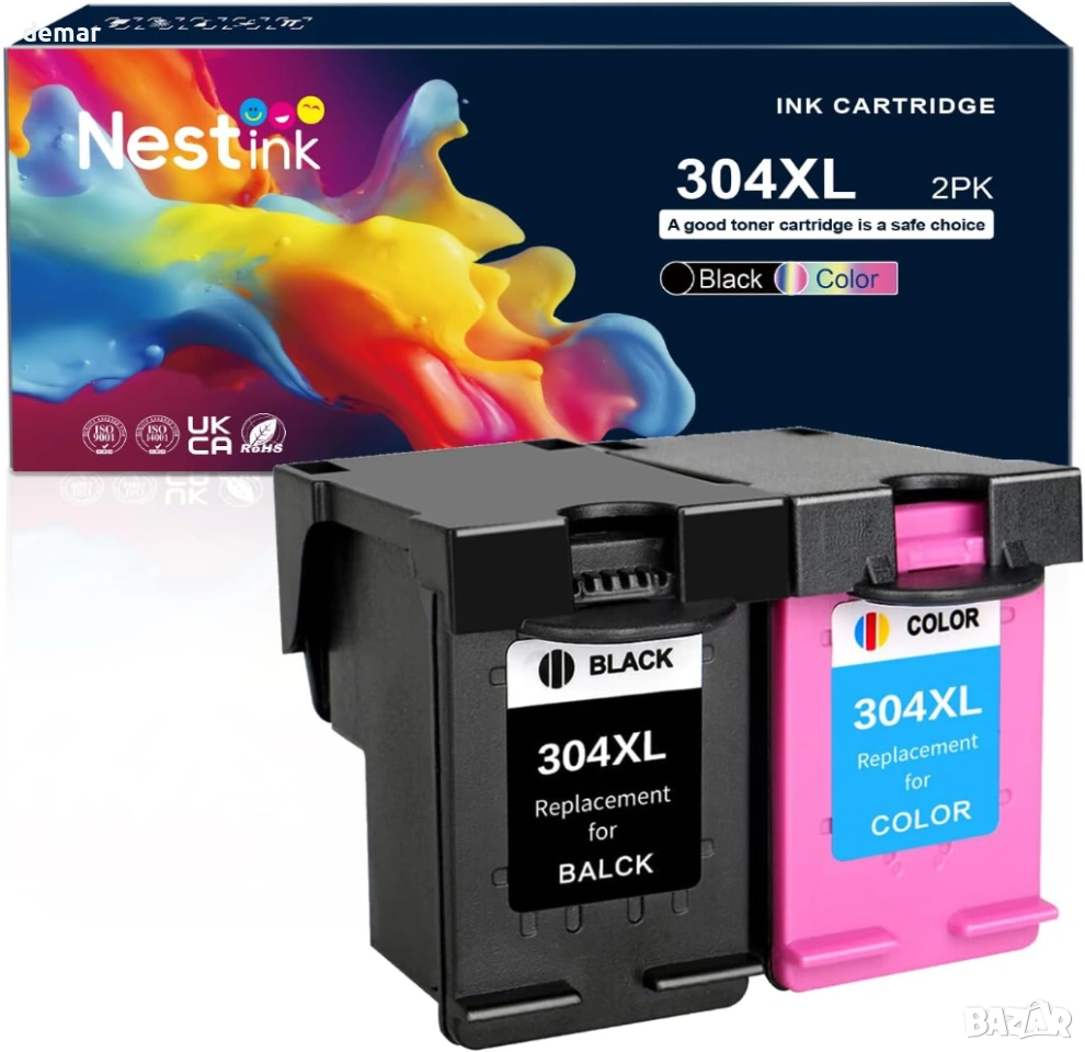 Този пакет включва една черна и една цветна XL мастилена касета с инструкции, проектирани за широка съвместимост с принтери от сериите HP AMP, Envy и DeskJet. Касетите с висок капацитет осигуряват до 750 страници черно-бяло и до 450 страници цветно (ISO стандарт), което намалява нуждата от честа смяна и е подходящо за редовна домашна или офис употреба. Инсталацията е бърза и лесна благодарение на предварително инсталираните IC чипове, които не изискват прехвърляне на чипа и отнемат около минута. Мастилото е формулирано да създава ясен текст и ярки цветове, което го прави подходящо както за ежедневни документи, така и за печат на снимки.
