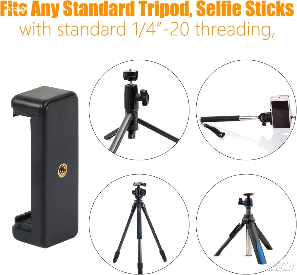 присъединява към всякакви стативи, моноподи, селфи пръчки и триподи, което го