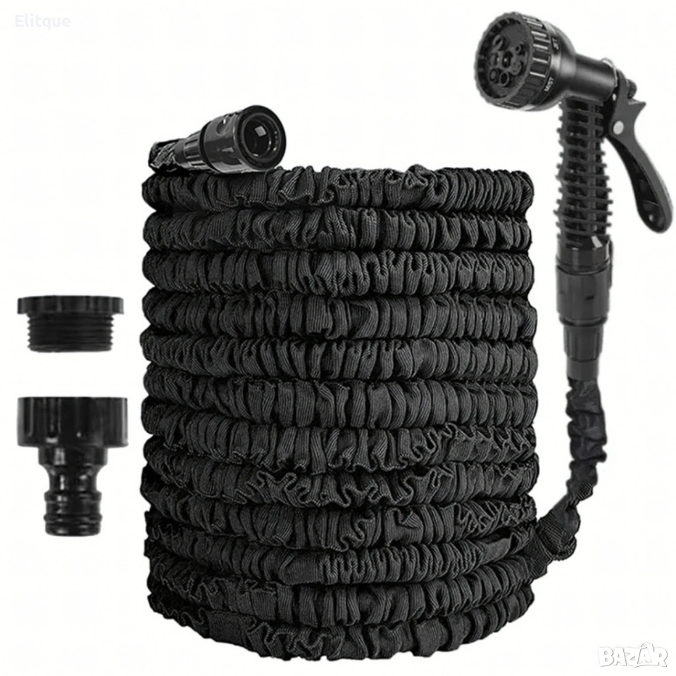 Гъвкав разтеглив градински маркуч 30м – Пълен комплект с пистолет (7 функции) и конектори на едро → Обява 53401844