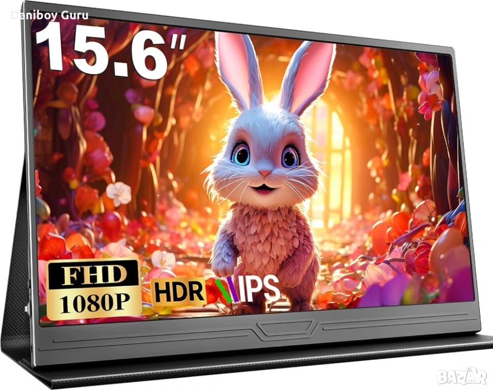 Преносим монитор, 15.6 инча 1080P FHD IPS втори екран за лаптоп с USB-C и Mini HDMI, грижа за очите,