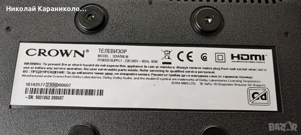 Продавам тв CROWN 32NV56LW за части по причина-счупена матрица/VES315WNGH-L4-N93/.Редовни съответно: