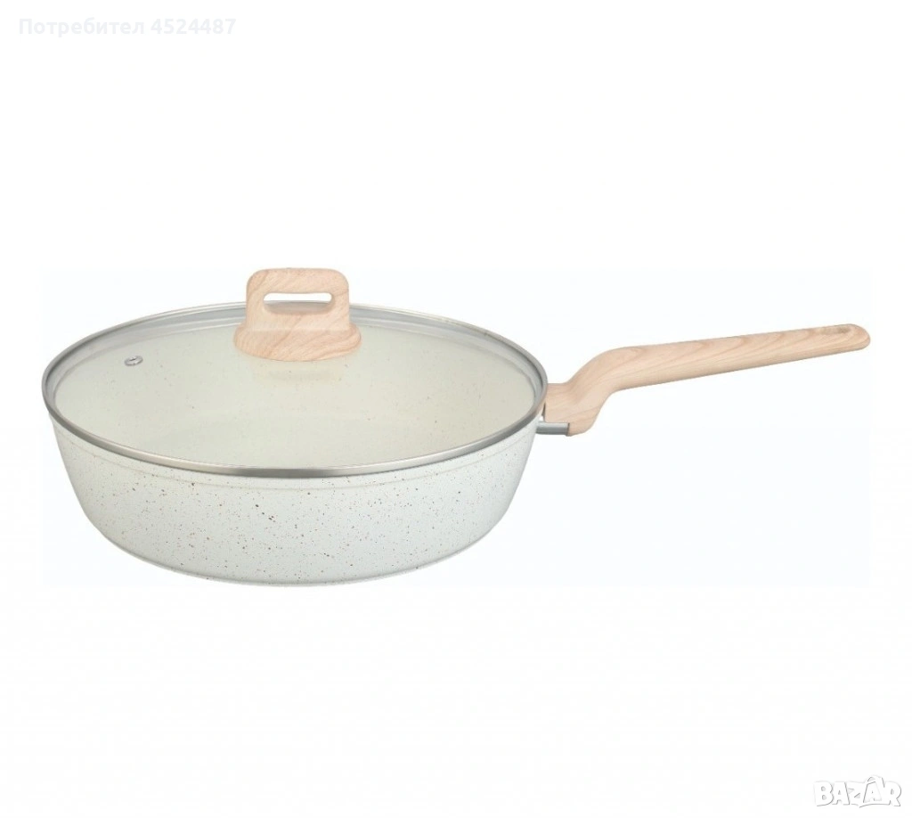 Тиган с капак Voltz Nice , Дълбок, Кован алуминий, Мраморно покр., Индукция, Кремав меланж → Обява 53401940