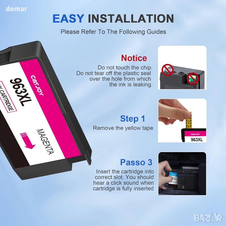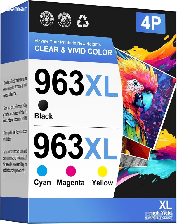 Съвместим с широка гама принтери HP OfficeJet Pro, използващи касети 963/963XL (с изключение на всички модели HP от серията „e“ и HP+), този мултипак включва черни, циан, магента и жълти касети, предназначени за надежден ежедневен печат. Той осигурява висок капацитет на отпечатване както за черно-бял, така и за цветен печат, което го прави подходящ за домашна или офис употреба, а строгите тестове на цветовете и професионалната технология за печат гарантират ясен текст, отчетливи детайли и наситени, постоянни цветове в документи и графики.