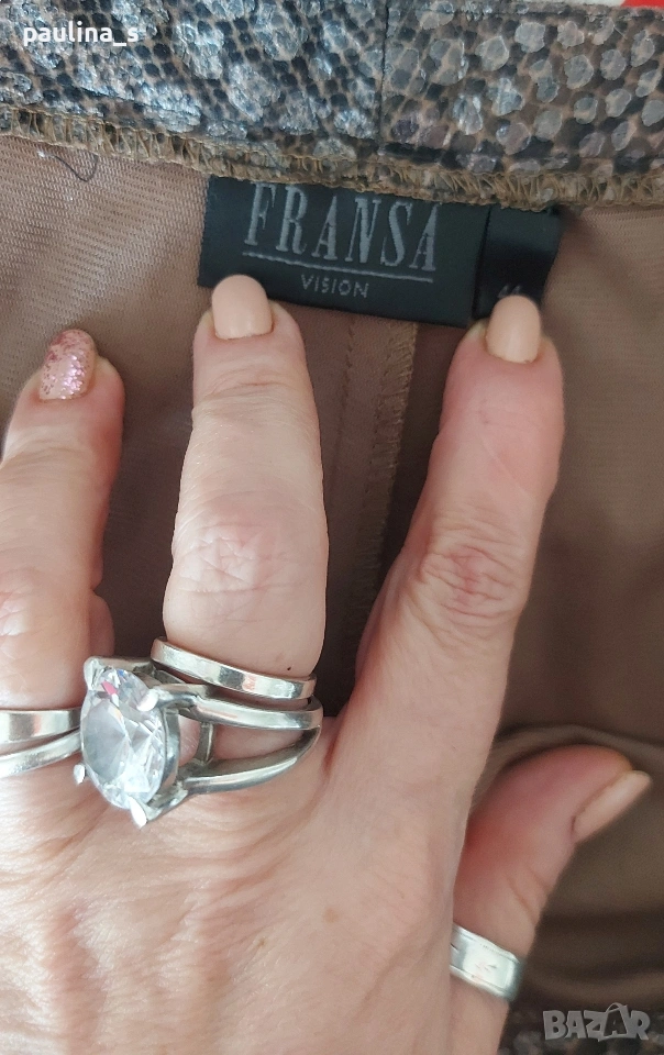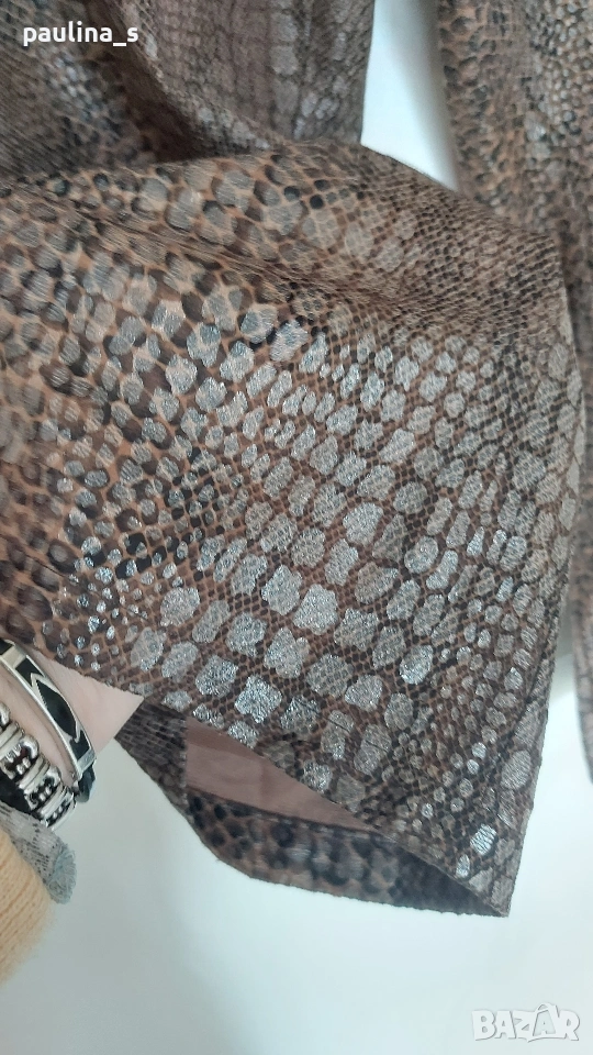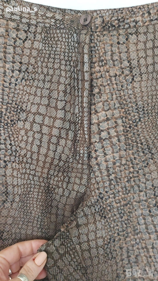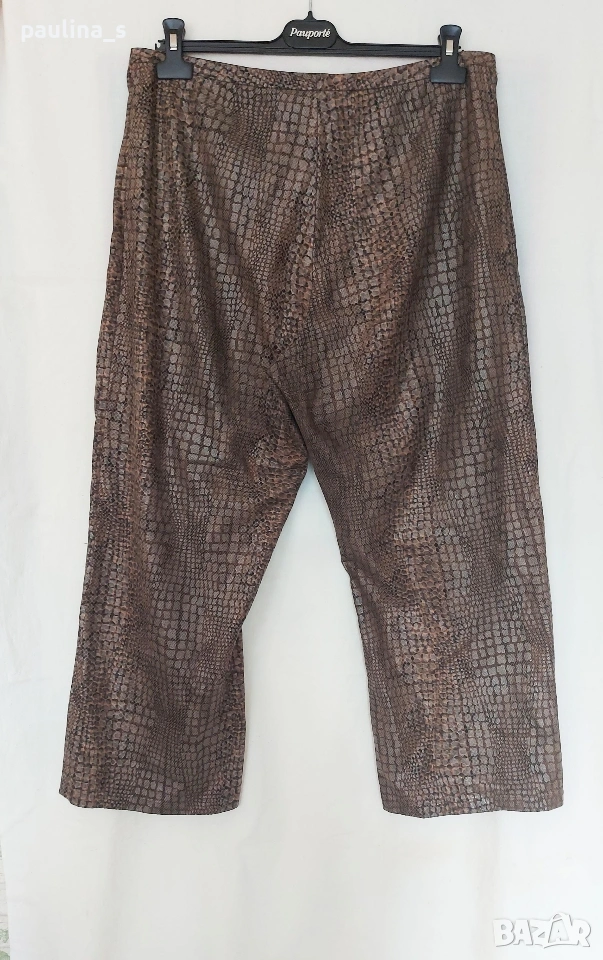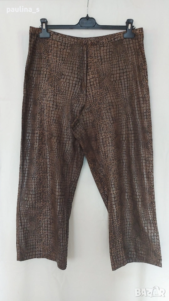 2️⃣. 2XL / 3XL - "Fransa". Цената е крайна, без пазарлъци 15 евро. Панталон в змийски принт с кожен ефект / широки крачоли, голям размер. Тренди бермуди в змийски принт с перлено-кожен ефект. Материята е еластична, немачкаема и покрива няколко номера. Моделът е обран, с широки крачоли, всичко е съобразено с размера. Не е нов, но е без дефекти.