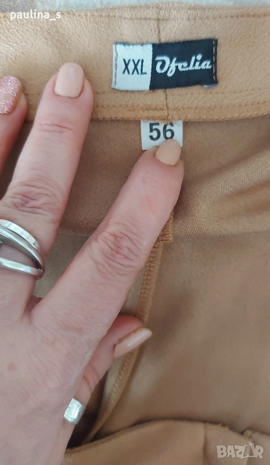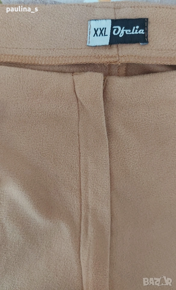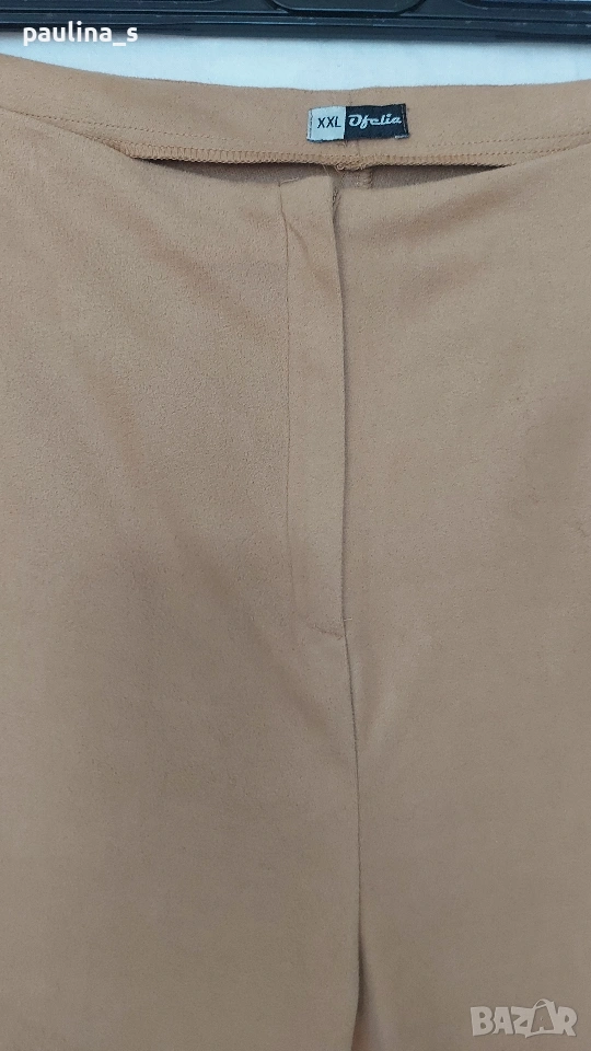 1️⃣. 2XL / 3XL - "Ofelia". Цената е крайна, без пазарлъци. 2XL / 3XL - "Ofelia". Цената е крайна, без пазарлъци 15 евро. Дамски велурени бермуди, от еластичен артифициален велур / кадифе. Платът е луксозно тънко кадифе с транслуцентен ефект, за това не е еднакъв цвета на снимките. Моделът е прав без интервенции по ширината на крачолите. Трикото е немачкаемо и има умерена еластичност. Талията е без колан, но не е ниска, стои на кръста. Като нови са, една бройка, става за посочените размери.