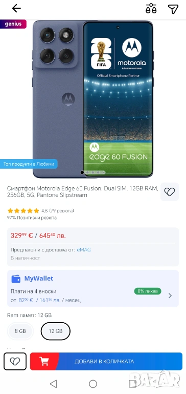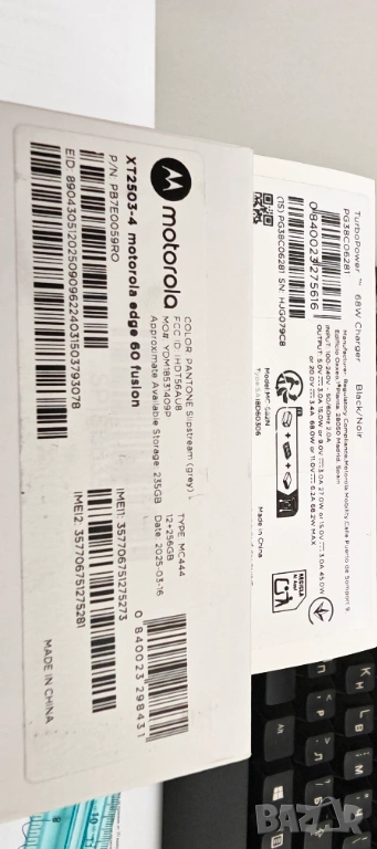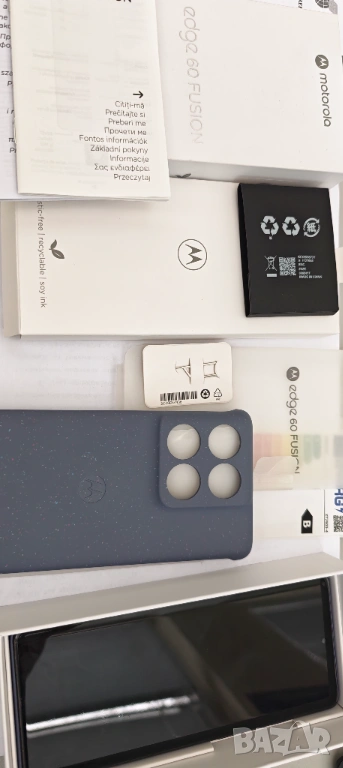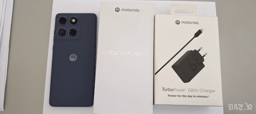 Motorola Edge 60 Fusion с 12GB RAM и с вградена памет от 256GB. Закупен от ЕМАГ и доствен на 17 ноември 2025г. с гаранция за 24 месеца. Фактурата за покупка и гаранцията от Емаг са на физ. лице, смъкнал съм ги от сайта в PDF и мога да ги разпечатам или изпратя по ел. поща/Вайбър. Използван е много малко, защото ми подариха Honor Magic 8 Pro. Щях да го оставям за дъщеря ми, но цялото семейство минаваме на марка Honor.