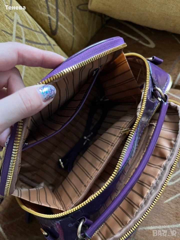 Лилава лачена дамска чанта → Обява 53402288