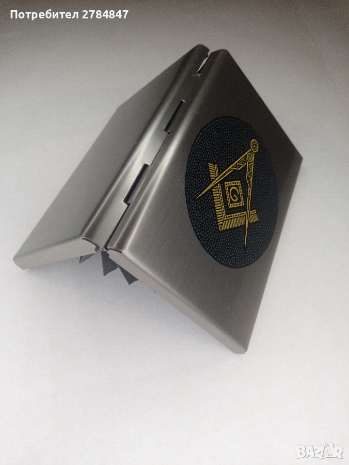Поставка за карти с масонски символи. Размери: дължина 10 см, ширина 7 см, дебелина 1,2 см.