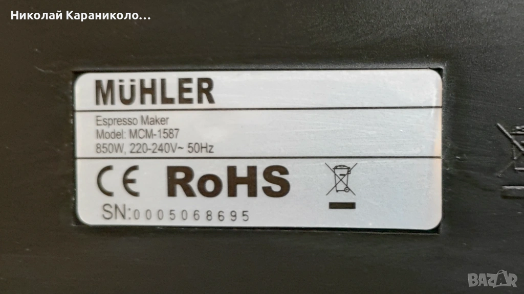 Продавам кафемашина MUHLER.Кафемашината е във добро състояние.След направена профилактика е.