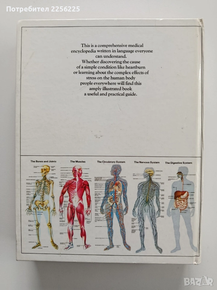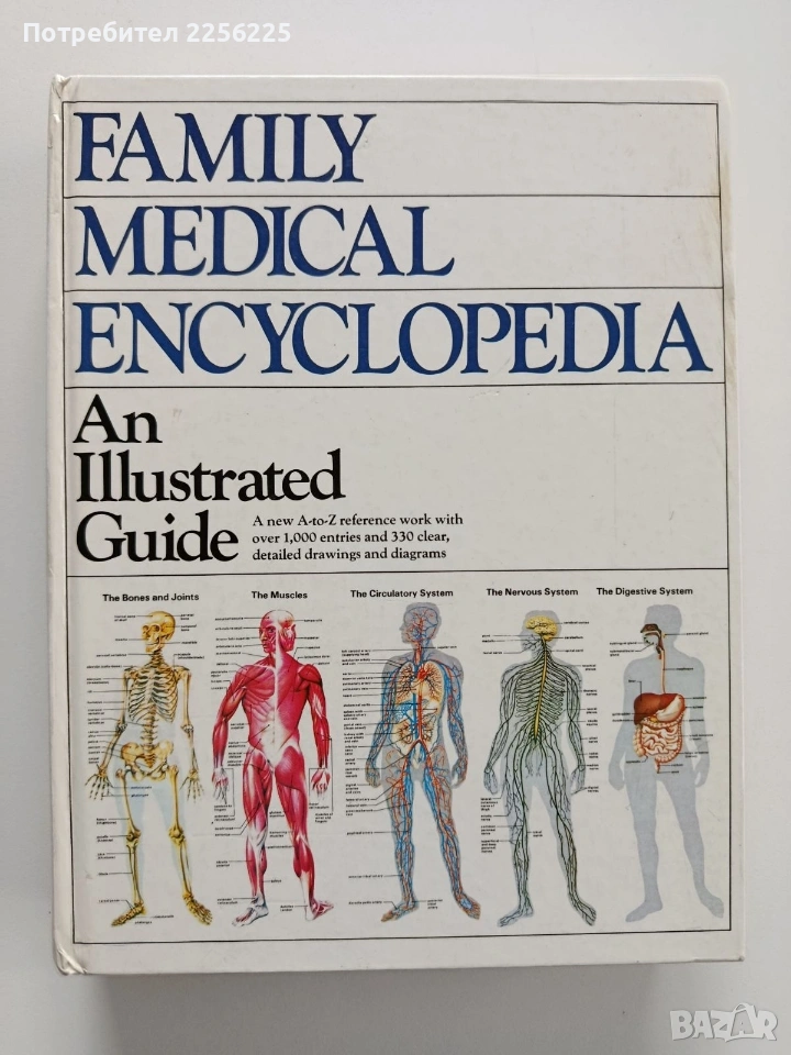 Това е изчерпателна медицинска енциклопедия,написана на достъпен език,предназначена за широка публика. Книгата съдържа над 1000 статии и 330 ясни чертежи и диаграми, показващи различни системи на човешкото тяло. Твърди корици 368 страници. Добро ( към много добро) състояние. Формат 260/200мм. Цената е без коментар.