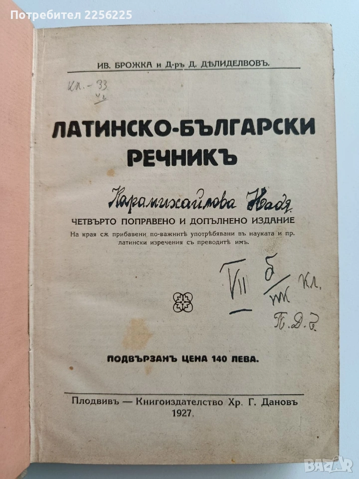 Латинско - български речникъ 1927г → Обява 53402470