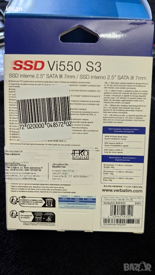 НОВО SSD Verbatim Vi550 S3 128GB → Обява 53402610