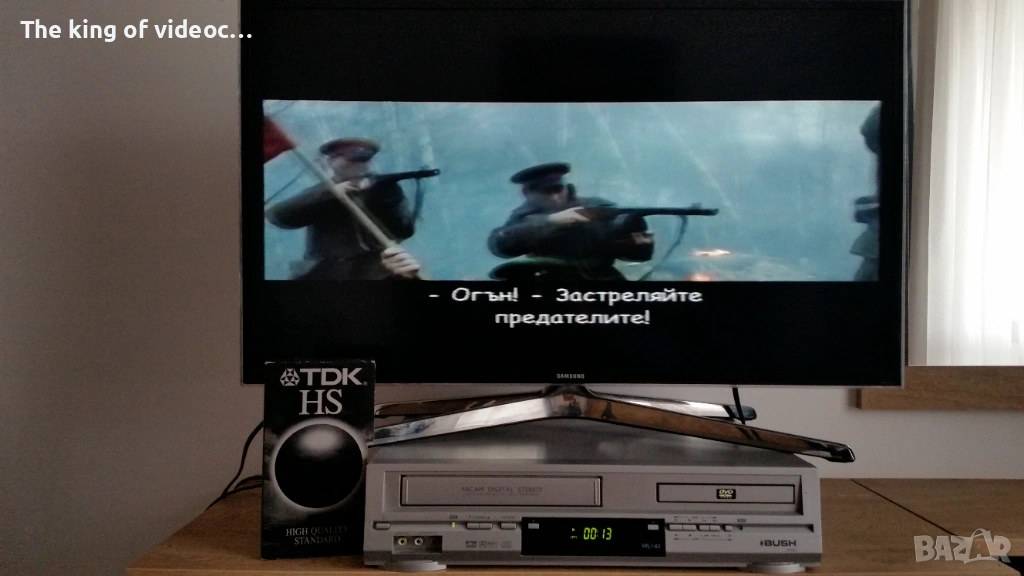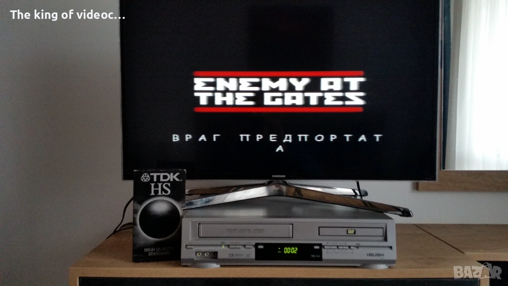Продавам видеокасета с два филма: "Предградие 13" от 2004 година . И " Враг пред портата " от 2001 година . Филмите са с кристално чиста картина , страхотен звук и говор . И двата филма са с български субтитри . Касетата работи отлично , от първата до последната секунда. Филмите са с КИНО формат ( смисъл отгоре и отдолу на екрана има черна лента която стеснява картината, за да се фокусира вниманието повече върху филма , всички филми по кината са така ). 14 снимки на касетата в работещо състояние . Изпращам с Еконт или Спиди .
