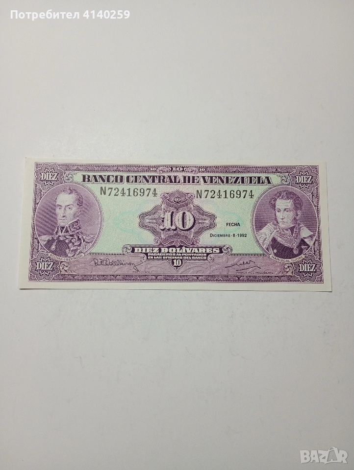 ВЕНЕЦУЕЛА БАНКНОТА 10 БУЛИВАР 1992 Г → Обява 53402972