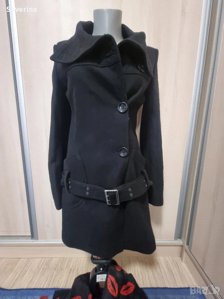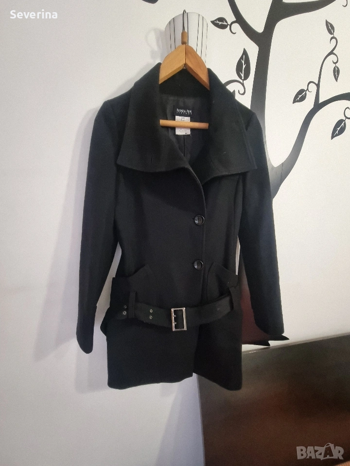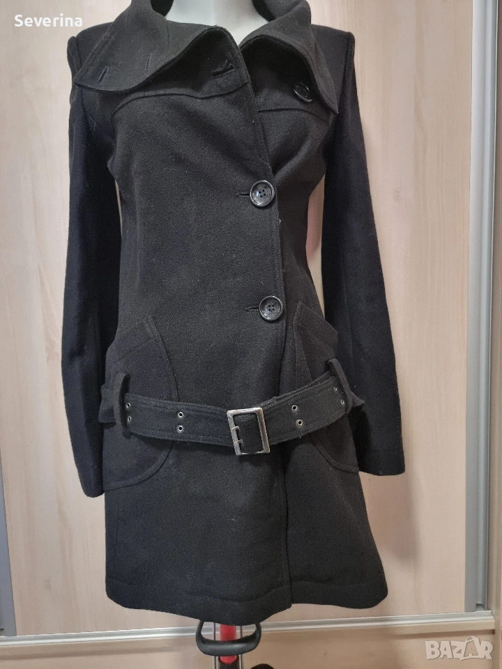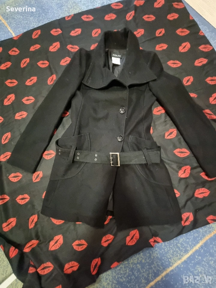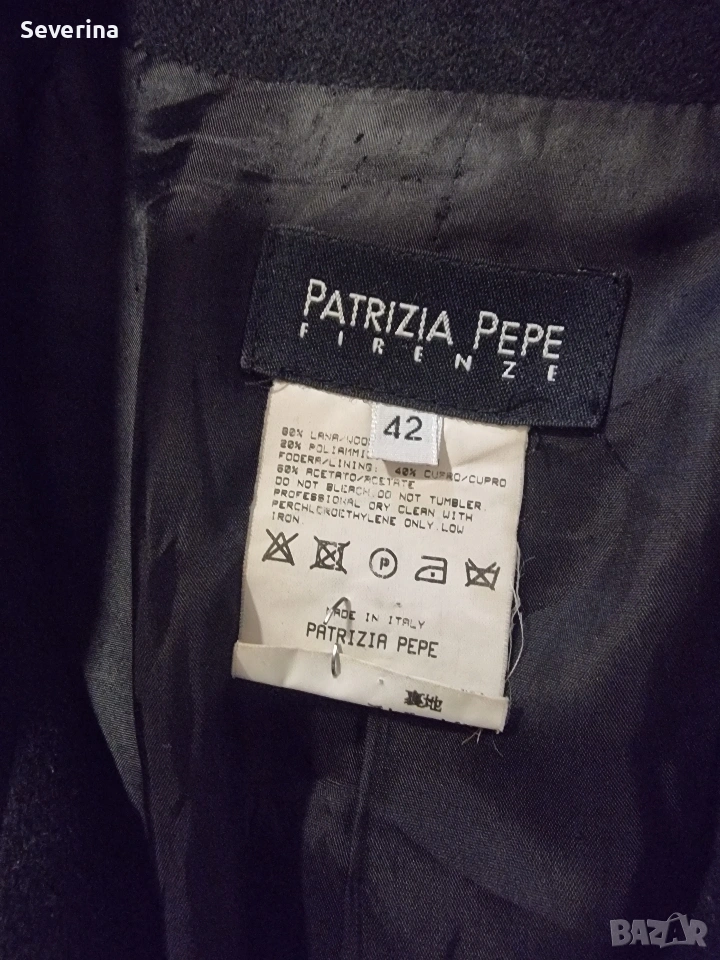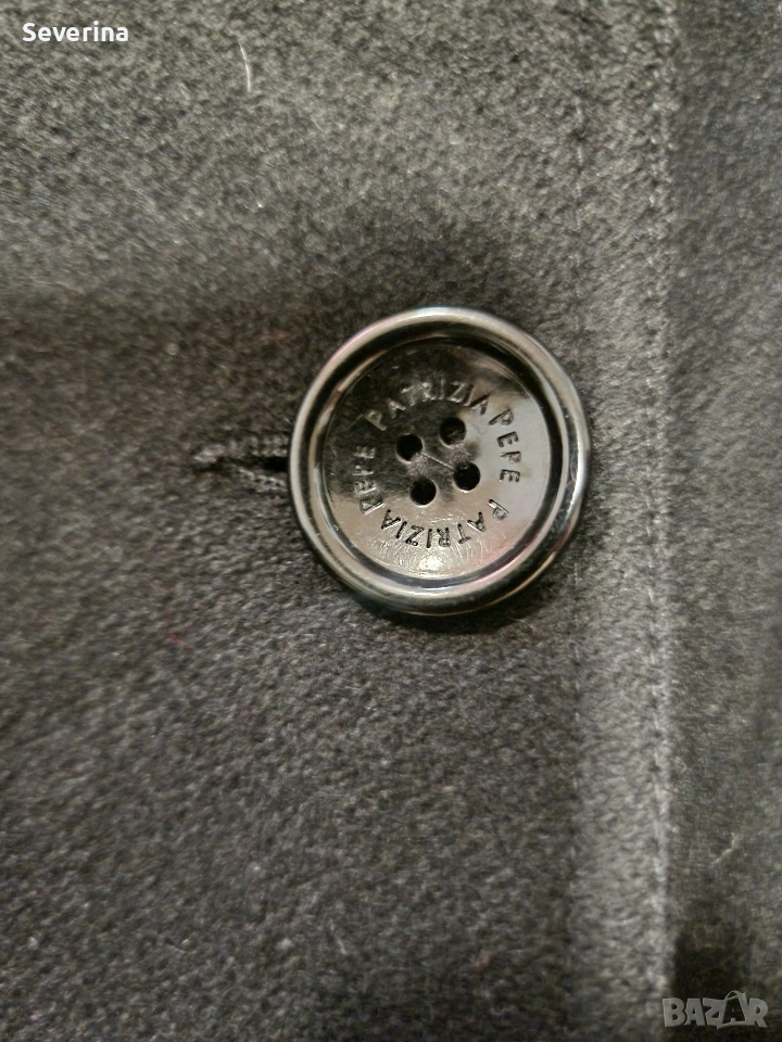 Оригинално палто на Patrizia Pepe, моделът е втален, с колан, с надпис на бранда, също и по копчетата.