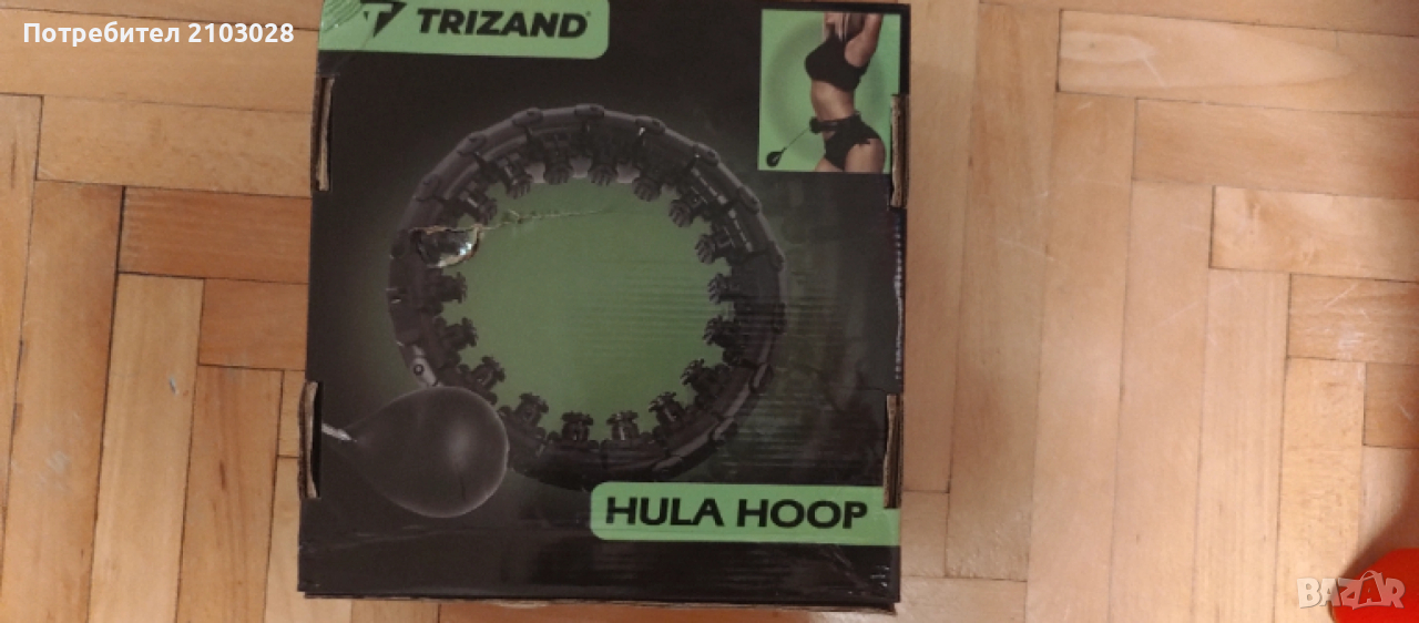 Обръчът е нов, само отворен и не е ползван, кутията е леко намачкана и скъсана.