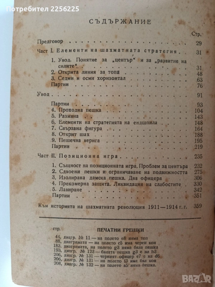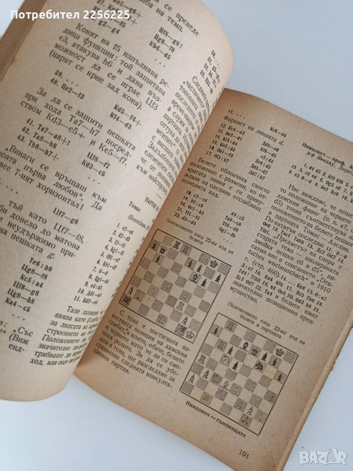 Стара шахматна книга от Арон Нимцович. Липсва титуловата страница. Много добре подвързана без други липси. Пожълтели от времето страници ( забележка на първата страница). Твърди корици 384 страници. Добро състояние .Формат 205/140мм. Цената е без коментар.