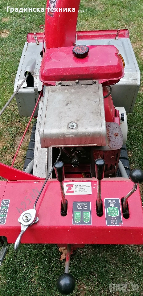 Внос от Швейцария двигател 15кс.произведена в япония. Всичко по машината се управлява с хидравлика, бързи и бавни скорости, запалване с ел стартер на 12в плюс ръчен, тегло 430кг. Отлично състояние обслужена и готова за употреба.