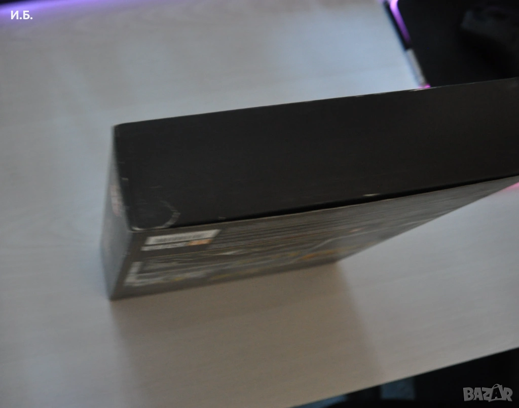 Има голяма твърда кутия с по-мека хартиена обвивка, леко нарушена в долния ъгъл.