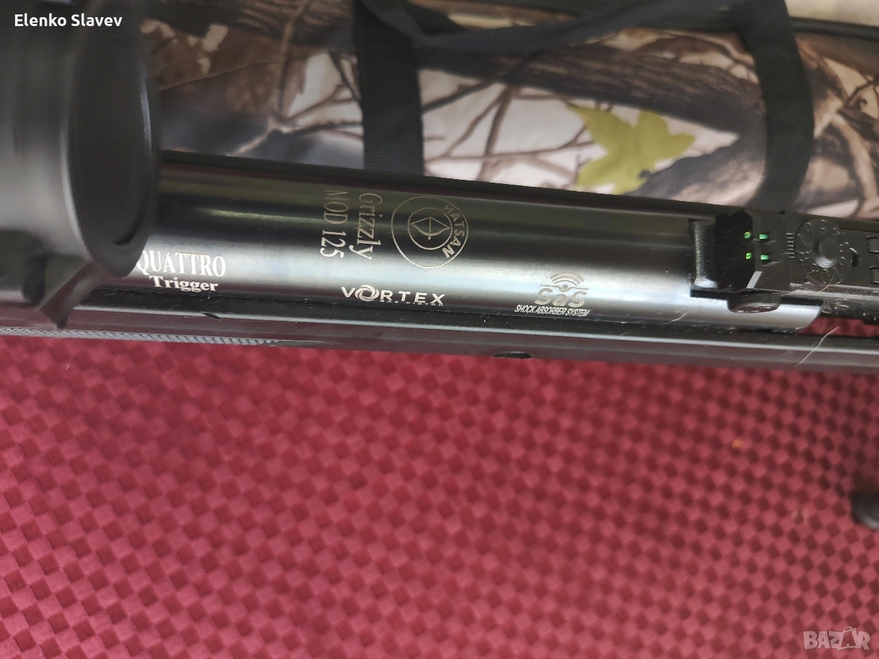 Прецизна нарезна стоманена цев - С чупеща се цев - система с единичен изстрел - Ергономичен, синтетичен приклад с дупка за палеца и с повдигната Монте Карло буза - С по-дълга цев за по-лесно презареждане - Със SAS Shock Absorber System, която значително намалява отката - Шината за оптиката е повдигната (с нагласяща се релса), с повдигнат стоп болт - Регулируем метален спусък на две нива за движението на спусъка и изтеглянето на спусъка – Quattro - Ръчен / автоматичен предпазител - Система за безопасност при зареждането - Anti bear-trap - TRIOPAD® система за прицелване с максимално обиране на отката - Дължината на приклада може да се увеличава до три различни степени, благодарение на TRIOPAD® stock spacers– допълнителни задтилъци - Регулируем мерник и фиброоптична мушка Характеристики Дължина 1205 мм Дължина на цевта 450 мм Тегло 4.100 кг Скорост 4.5 мм - 380 м/сек 5.5 мм - 305 м/сек 6.35 мм - 230 м/сек