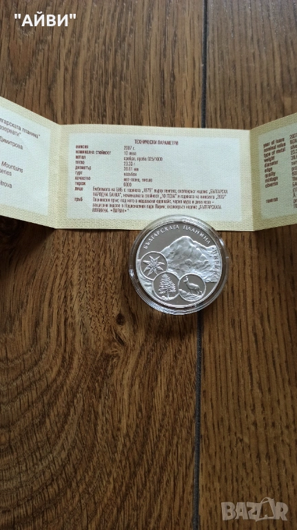 Сребърна монета 10 лева 2007 г. Българската планина - Пирин → Обява 53403511