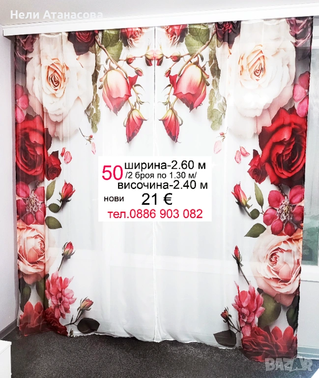 Красиви пердета с рози-2 броя .Размер на едното перде 1.30 м ширина,височина-2.40 метра.НА ВСЕКИ МОДЕЛ РАЗМЕРИ И ЦЕНИ.