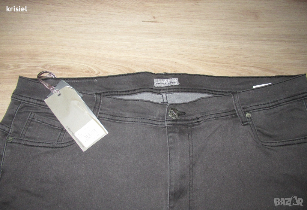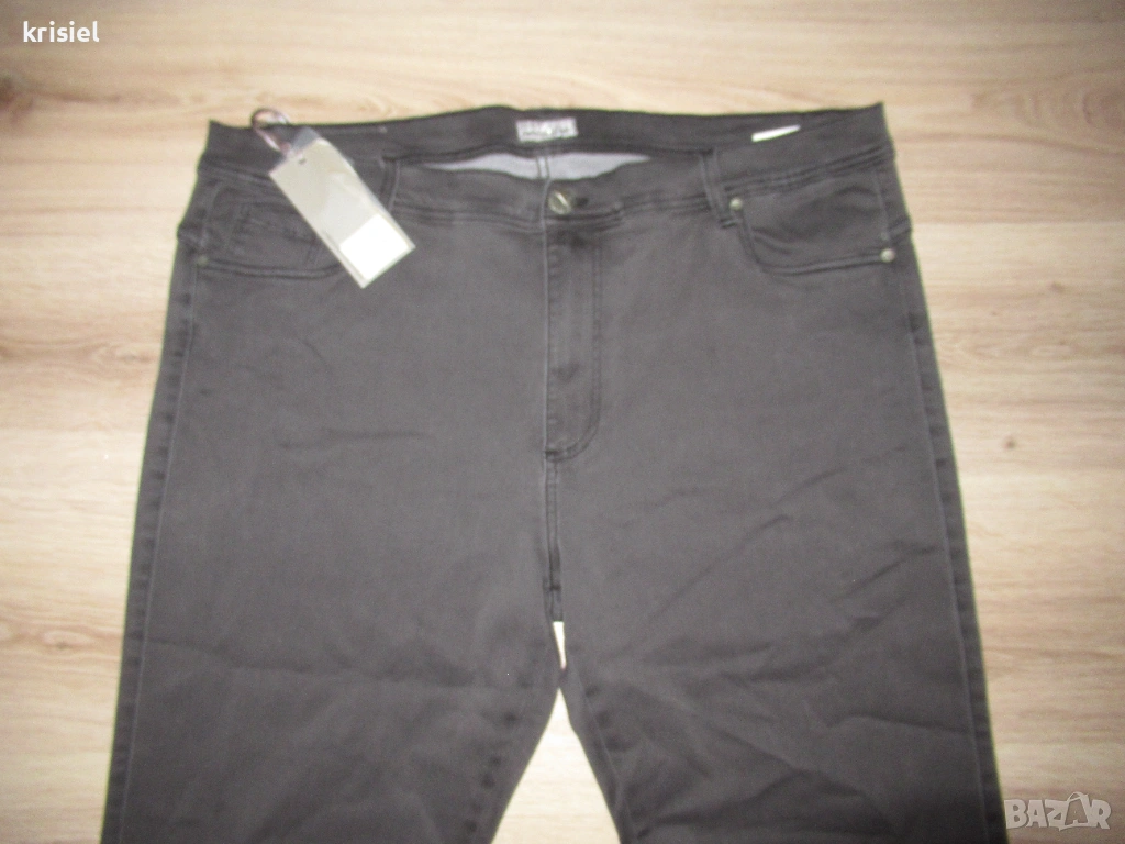 Дънките са нови,с етикет.Номер 3XL.Много хубав модел.Супер мек,приятен деним.Страхотно еластичен удобен деним.Сив графитен цвят.Размерите са:дължина-101см,талия-52/60см,ханш-61/71см,бедро-34/38см,дълбочина-30см