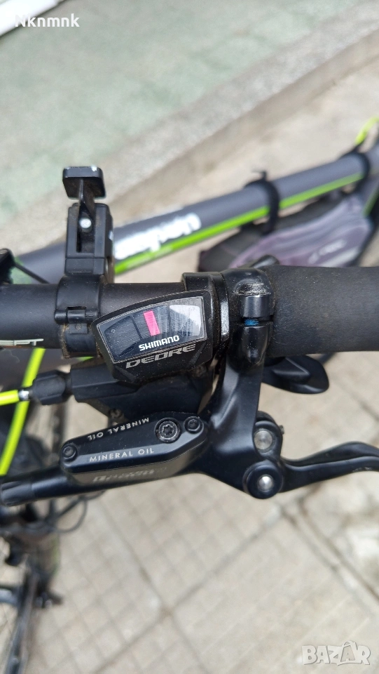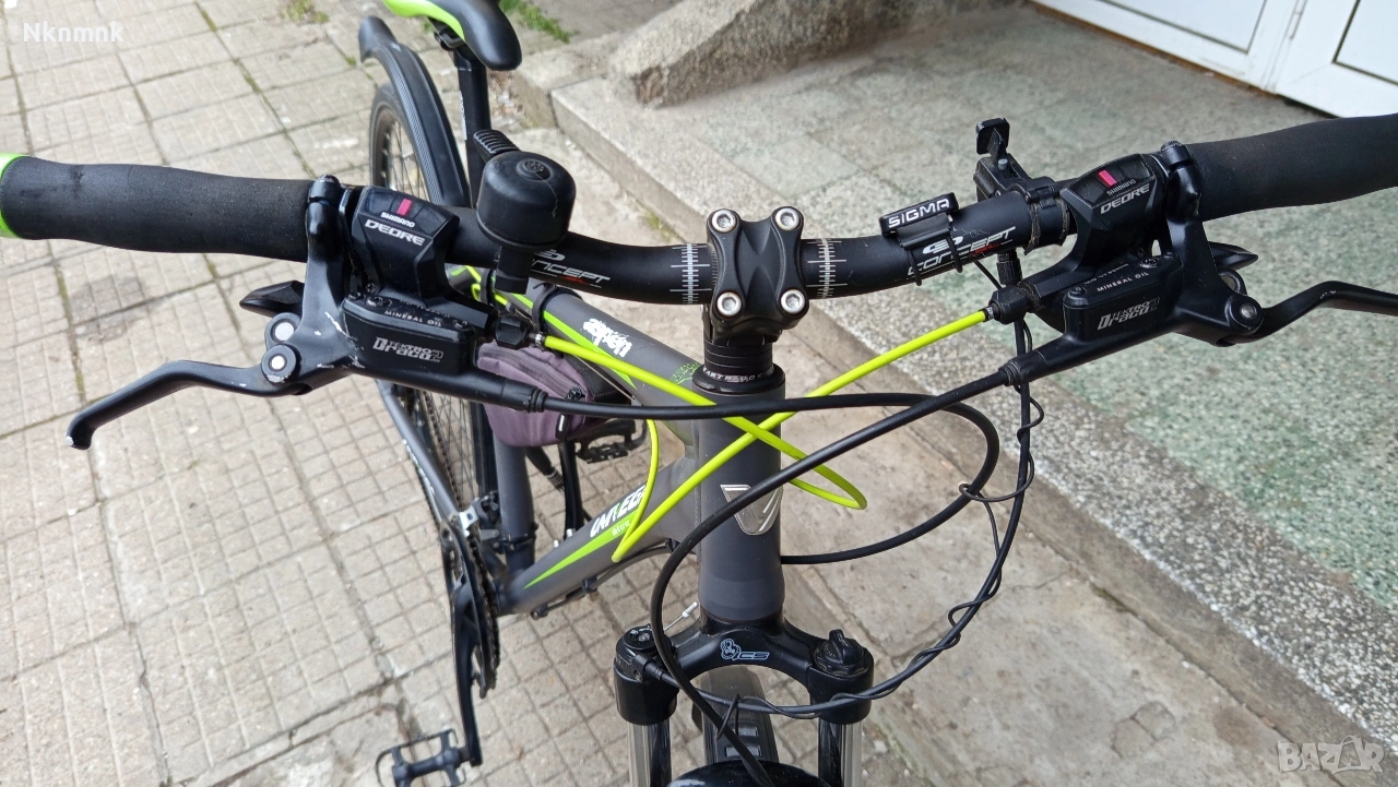 Велосипеда е внос от Германия Алуминиева рамка във перфектно техническо и визуално състояние като ново Пълен монтаж Shimano Deore 27скорости,куха ос, амортисьори регулираща и заключваща вилка, хидравлични спирачки със чисто нови гуми