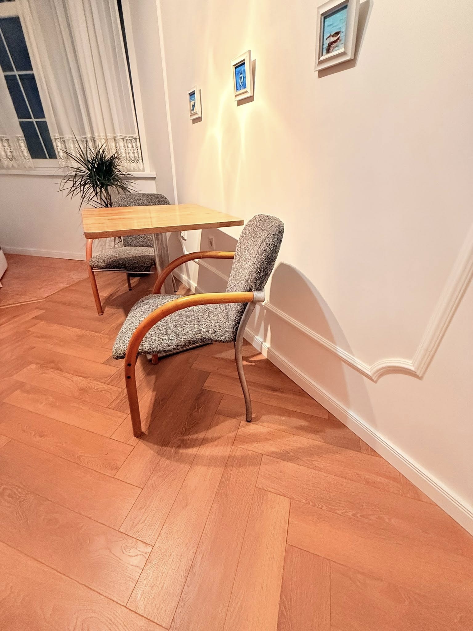 Апартаментът е след основен ремонт! Подменени ел инсталации, шпакловки, боядисване и подови настилки във всички стаи. Разпределението е много удобно. На практика външните стени са само под прозорците, но има външна изолация от 10см фибран. Подменена е и цялата дограма с Rehau SYNEGO 8 камерна за добра шумо и топлоизолация. Вътрешните врати са масивни, поръчкови, ръчно изработени. Разполага с 2 хубави на размери /14 и 15 кв.м/ спални, дневна, отделна кухня, която е голямо удобство при готвене и за упорити миризми, коридор, санитарен възел, мокро помещение и тераса почти квадратна. Климатиците във всички стаи са чисто нови, хиперинверторни с ниско ниво на шум до 20 децибела, нисък разход на енергия и висока степен на икономичност. В кухнята има чисто нова фурна с керамични котлони, голям хладилник за вграждане с но фрост система, чийто разход на енергия без изключване е по 5лв на месец, нова пералня, сушилня с термопомпа Bosch, която също изразходва до 5лв енергия на месец. Подовата настилка навсякъде е чисто нов естествен паркет от дъб и череша, за да е топло и приятно, и да не е шумно, както когато се върви по ламината хлопа. Всички стаи са снабдени с тънки и дебели завеси, като в двете спални плътните са блекаут за пълно затъмнение! Леглата в спалните помещение са със нови и със супер удобни матраци от пенолатекс без пружини. Под едното легло има вградено багажно отделение. Мебелите в едната спалня и в хола са от истински масив - череша и дъб. Всички стаи са снабдени с големи, вградени телевизори с плосък екран на стената, без висящи кабели. Калъфите на холовата гарнитура могат да се свалят и перат в пералня за по-добра хигиена. Терасата е остъклена, около 4 кв.м и южна. Паркирането в района е решено със синя зона, която е около 100 лв годишна такса. При желание може да се ползва и общински пракинг на съседната улица.