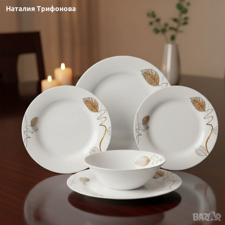 Стил и изтънченост за всяка трапеза - Комплект чинии 24 части с елегантен листен дизайн