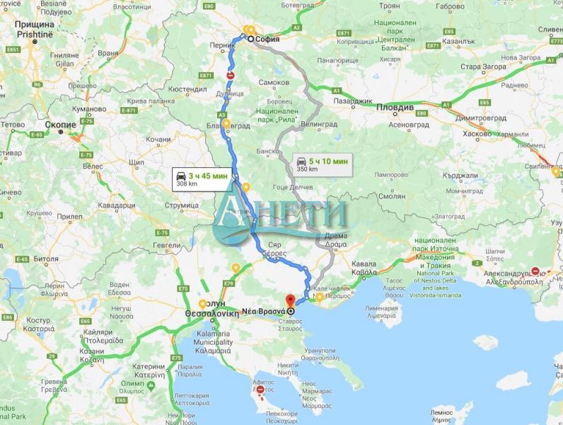 Имотът е с добра локация, намира се само на 300 км от София в Северна Гърция, на 80 км от град Солун, Кавала, Серес, Света Гора, 70 км от град Драма и Филипи, 60 км от Стагира, пещера Алистрати, 35 км от минералните извори на Аполония, 30 км от Амфиполи. Достъпът до градовете Солун, Кавала, Серес и Драма е подсигурен с автобуси през около час. Бърз и удобен достъп до тези градове има и чрез автомагистрала Егнатия одос.
