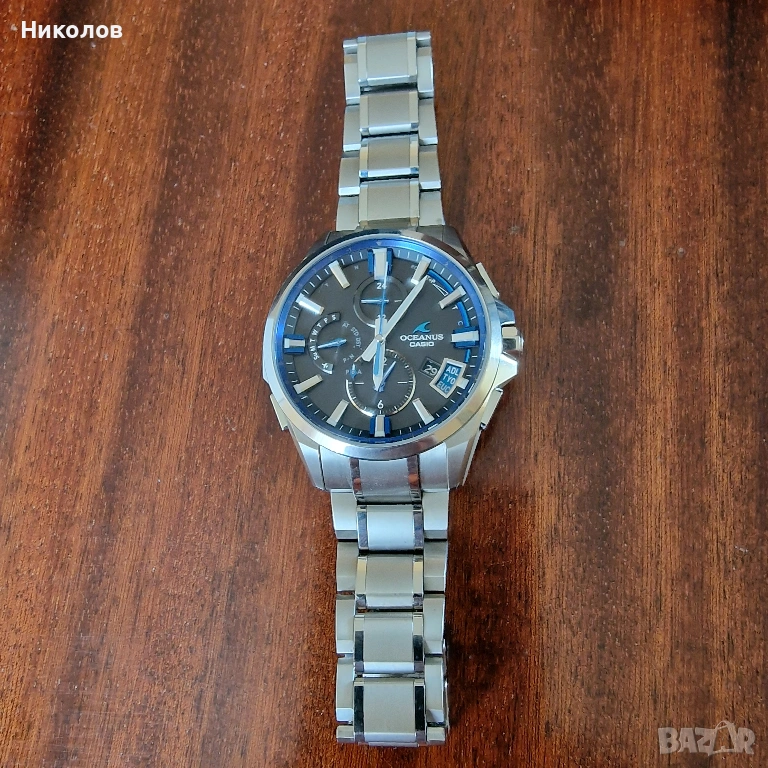 Използван мъжки часовник Casio Oceanus OCW-G2000-1AJF Bluetooth,GPS,Sapphire Cristal,Solar Radio Controlled,100 метра,титанов корпус.Продукта съм го купил чисто нов,носил съм го малко време,има минимални следи от използване и изглежда много добре за годините си.
