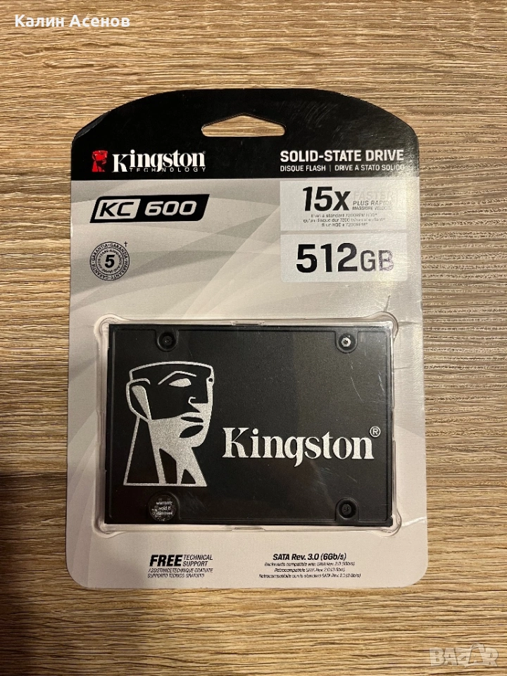 Чисто ново SSD Kingston KC600 512GB (Запечатано) Текст: Продавам висок клас SSD Kingston KC600 512GB. Дискът е нов, в оригиналната си опаковка, не е отварян.