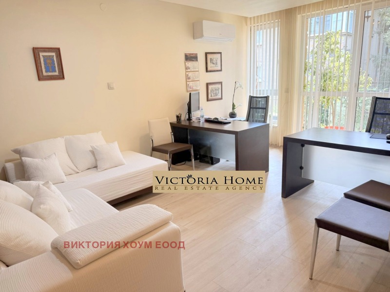 Намира се в нова сграда с Акт 16 - луксозно сторителство с парапети от ковано желязо, в самият супер център на града - в близост до пл. Тройката, църквата Св. Св. Кирил и Методий , Съдебната палата, офиси на няколко нотариуса са в съседство, банки, най-елитното училище в града Св. Св. Кирил и Методий , главната Александровска в най-добрата и част е на 2 мин, на около 500м от Морската градина, Летния театър и плажа и т.н. Всичко е наоколо и това създава много удобства и се пести време и енергия!