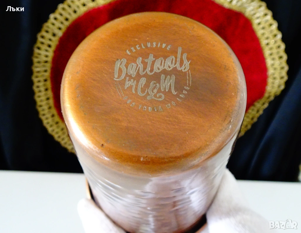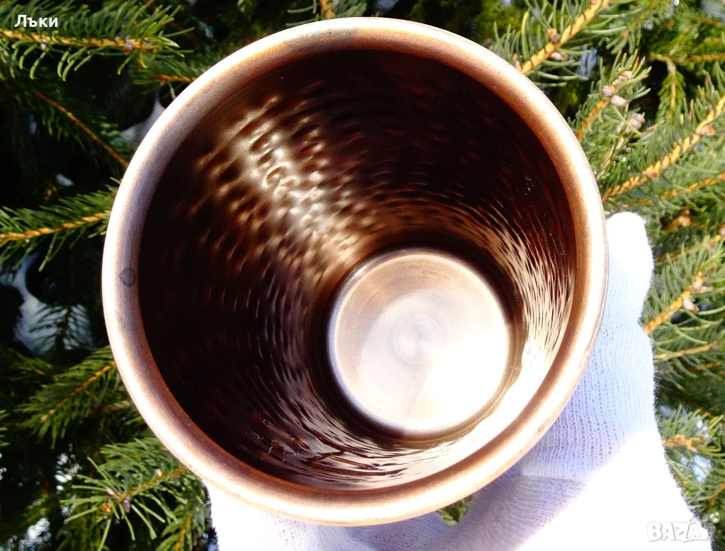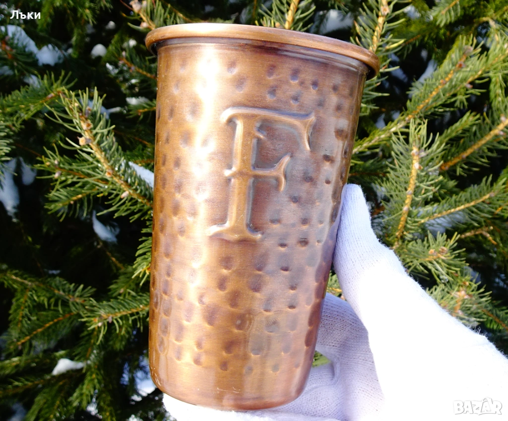 Стара медна чаша Ferdinands Gin ефектно декорирана с кован релеф и красива буква F.Чашата е маркирана с печат