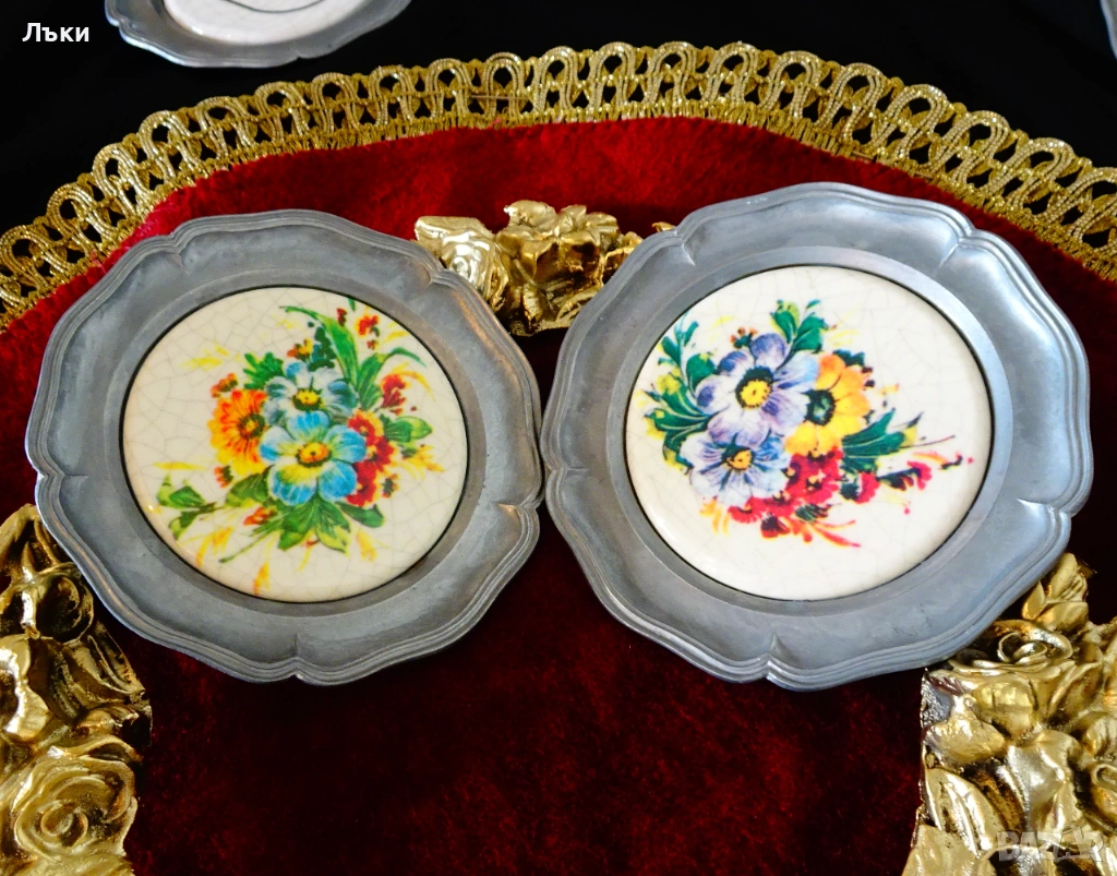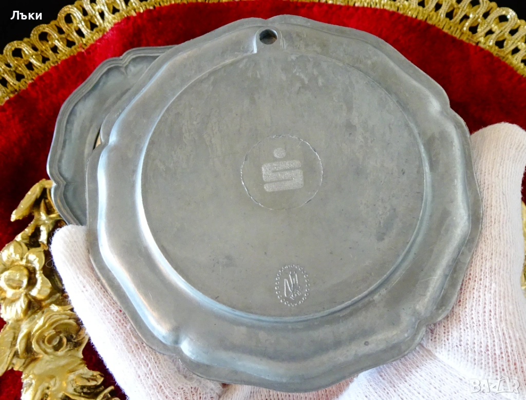 Стара немска калаена чиния,пано,подложка за чаша,майсторска