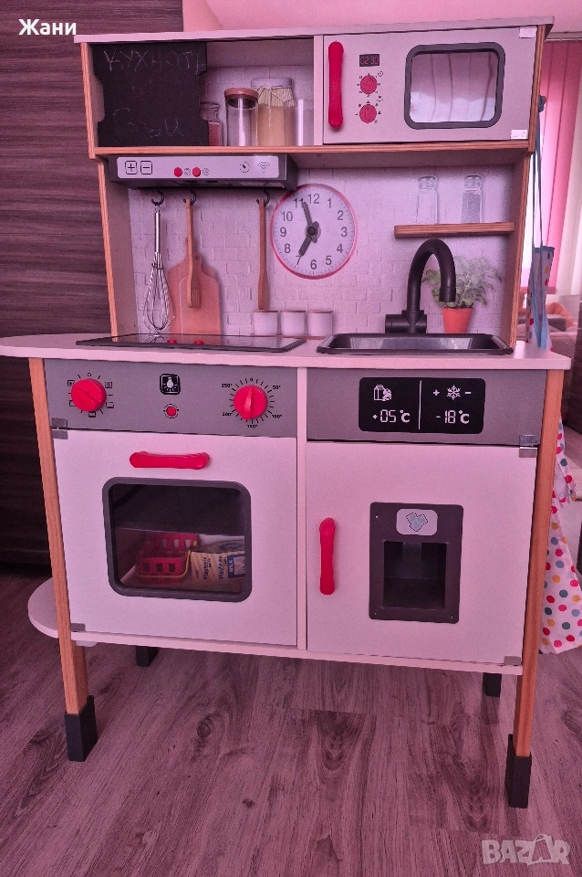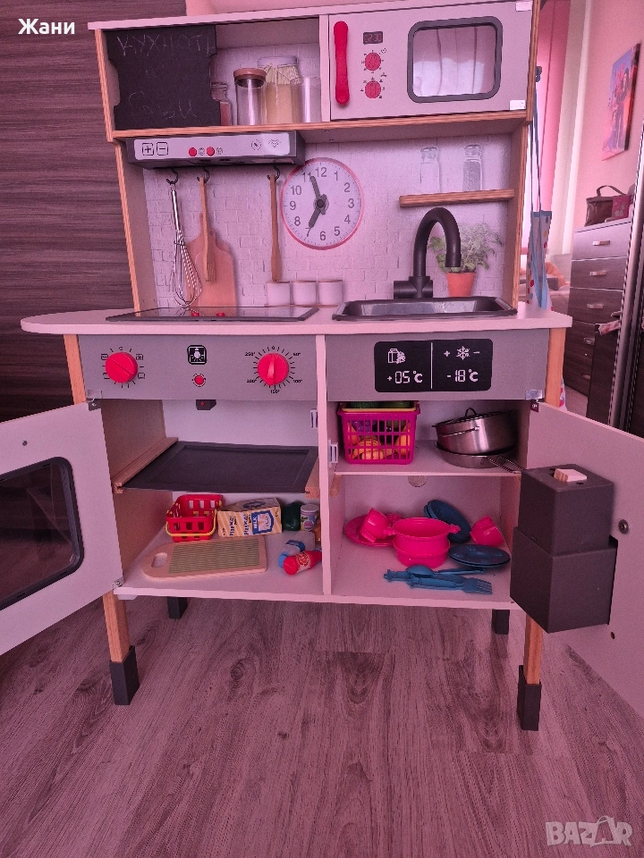 Продавам детска дървена кухня с принадлежности към нея. В отлично състояние. Сглобена се продава. Лично предаване за град Стара Загора или с куриер за друго населено място.
