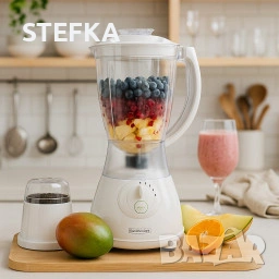 Мощност: 400W; Напрежение: 220-240V~ 50/60Hz; Капацитет на каната: 1.5 литра, пластмасова; Остриета: Неръждаема стомана; Скорости: 4 + Pulse функция; Приставки: Основна кана + приставка за мелница; Система за безопасност: Safety interlock; Крачета: Противоплъзгащи, гумирани; Ниво на шум: Ниско; Размери на опаковка: 180 x 170 x 403 мм; Гаранция: 12 месеца.