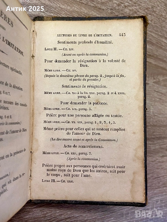 Старинна френска книга „Imitation de Jésus-Christ“, XIX век