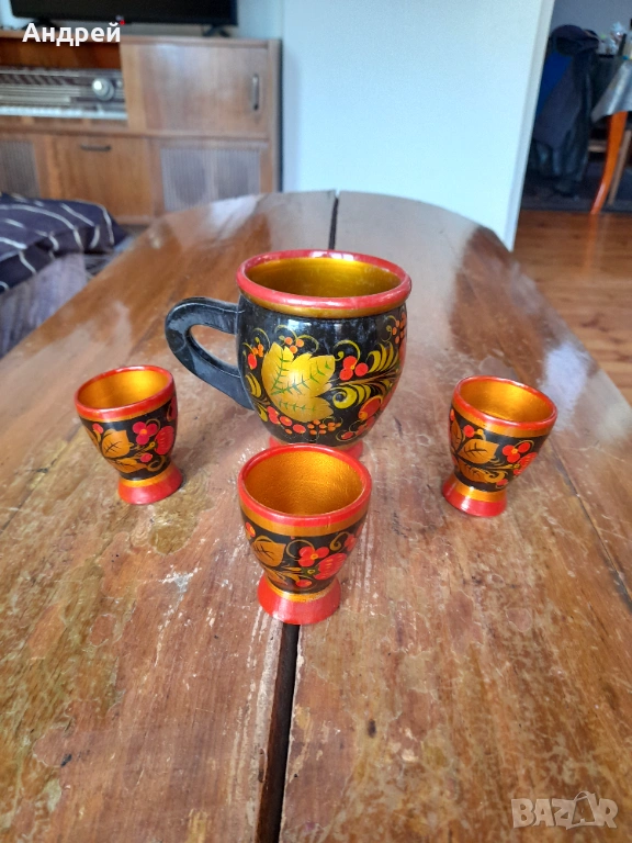Лот дървени чаши хохлома от соца!