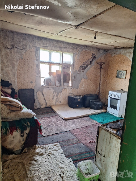 Състояние: Къщата се нуждае от основен ремонт. Покривът е в лошо състояние и на места има течове. Наблюдават се пукнатини и влага по стените. Необходими са ремонтни дейности както по покрива, така и вътре в къщата. Имотът е подходящ за ремонт, вила или ново строителство.